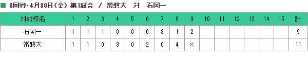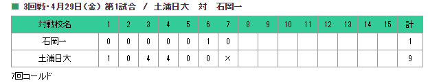 1回戦 石岡一 5-2 茨城高専 2回戦 石岡一 6-5 水戸商